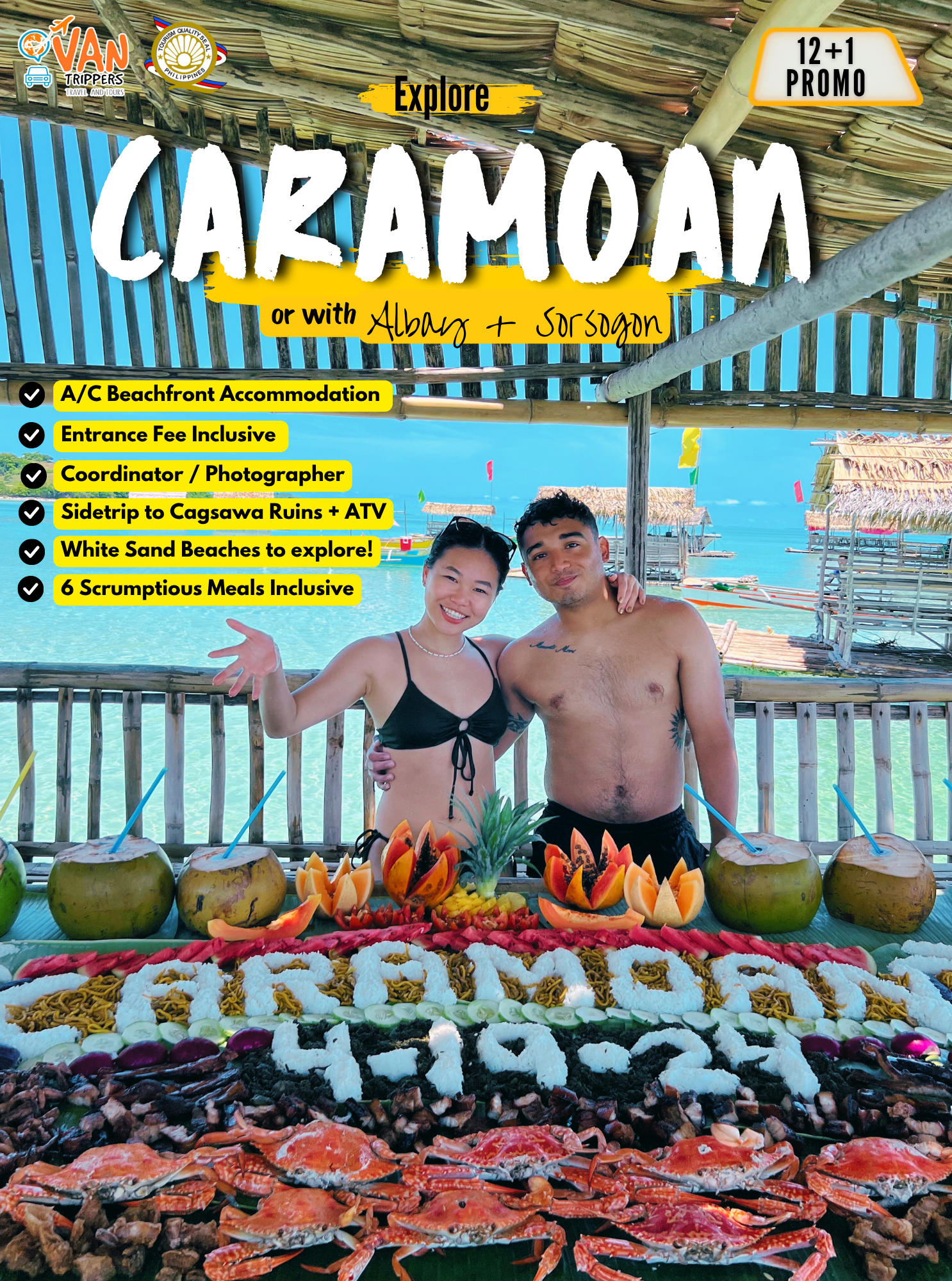 We require a ₱1,000 per person down payment (DP) to confirm your reservation. The remaining balance is collected on departure date.